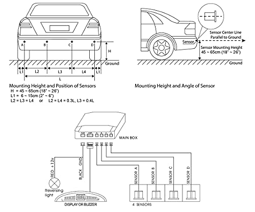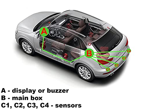 Specification: HOALTE Einparkhilfe-Set zum Nachrüsten, 4 Ultraschall-Sensoren fi 22 mm, Reichweite bis zu 2 Meter, vertikale und horizontale Hinderniserkennung, akustische Warnung, für alle Autotypen