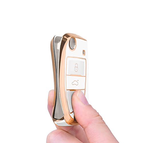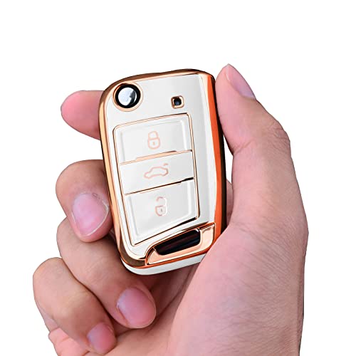 OATSBASF Autoschlüssel Hülle VW,VW Golf 7 Schlüsselbox,Schlüsselhülle Cover für VW Polo Skoda Seat 3-Tasten (Goldener Rand-Weiß)