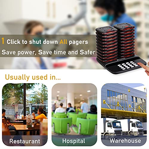 Specification: Retekess TD183 Pager System, Doppelte Ladung Restaurant Pager, 20 Untersetzer Stabil, 30H 300mAh Pager, Gebührenerinnerung, FSK Langstrecken 800M, Anrufverlaufsanfrage, Restaurant, Hotel, Clinic